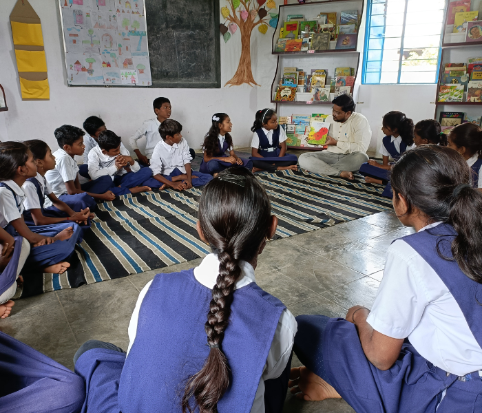 Our reading room (library) in Sirsi is a hub for children who come to enjoy reading and various programs. With support from parents and the community, we impact around 250 children, while also serving as a resource center to train facilitators for government school teachers running the library program. Working with government schools allows us to reach even more children and collaborate with teachers, with formal permission from the Block Education Officer (BEO) to continue our work with ZP school Chanoda and ZP school Hivra.